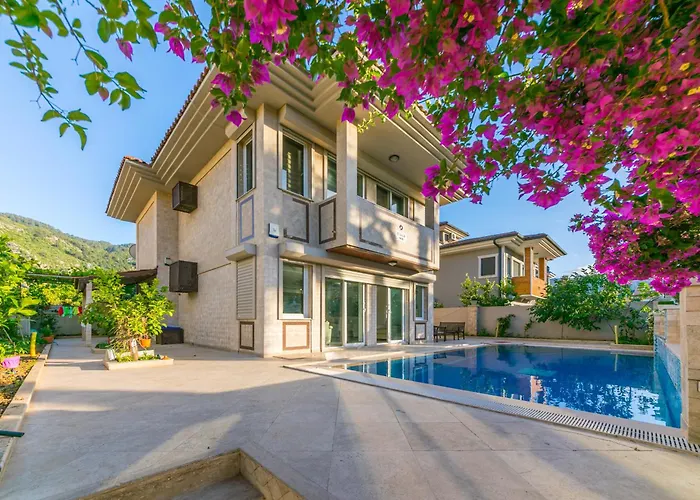 3 yatak odalı ve bahçe manzaralı Villa Şükran Daily Weekly Rentals İçmeler ile Marmaris Atlantis Suparkı arasında 6 km vardır. Tam donanımlı mutfak ve 3 banyo odası bulunmaktadır.